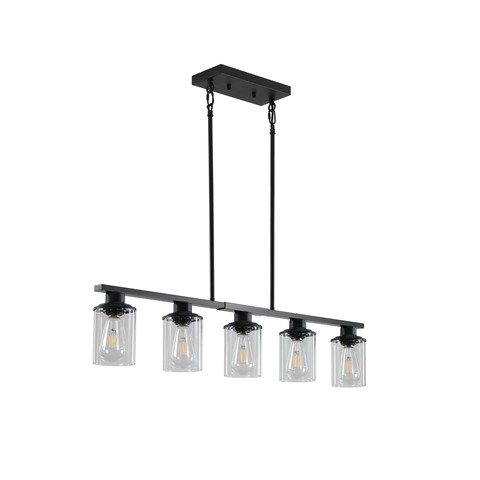 37" Modern Industrial 5-Light Chandelier with Clear Glass Shades, Matte Black Metal Frame Hanging Ceiling Light Fixture for Dining Room, Kitchen Island, Living Room (No Bulbs)